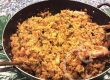pasta con ceci, salsiccia e patate